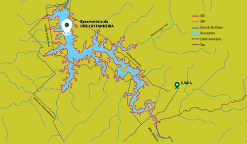A UHE Castanheira não alagará terras indígenas e unidades de conservação.